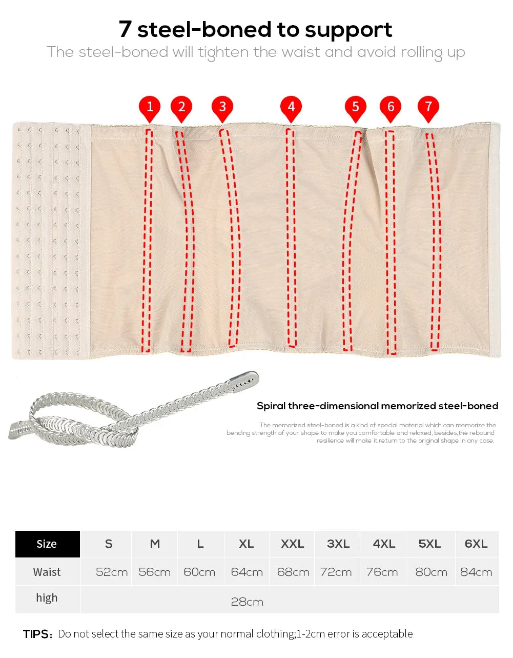 Designed for everyday wear or postpartum recovery, it offers full comfort, improves posture, and instantly flattens the tummy. The 7 memory steel bones prevent rolling and naturally contour your silhouette, while the adjustable hooks let you choose your ideal compression level.